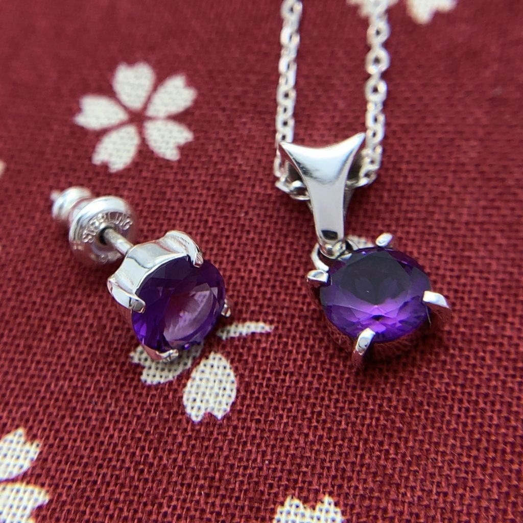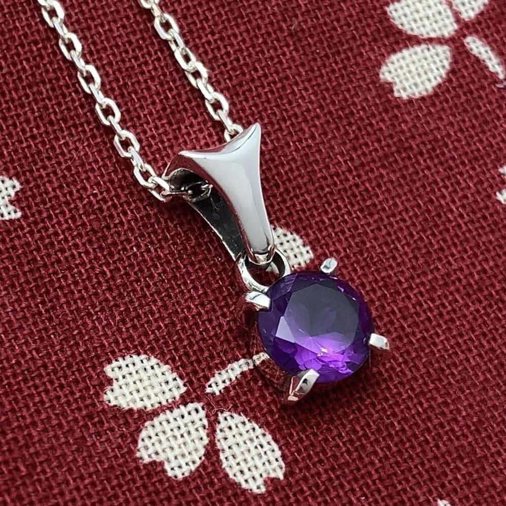 さくらインカット ネックレス アメジスト/シルバー925/和風 和柄/和モダン 和ゴス/和装 着物/春 桜/天然石 誕生石/つけっぱなし