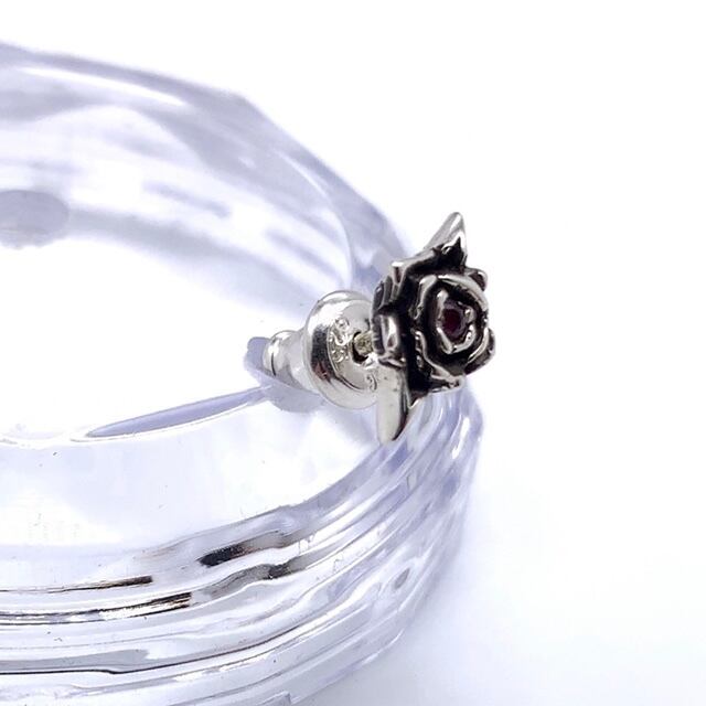 薔薇 ピアス ルビー/シルバー925 片耳用/量産型 地雷系/ゴシック ロリータ/パンクロック V系/病みかわいい ゴスロリ/メンヘラ ヴァンパイア/セカンドピアス つけっぱなし/薔薇