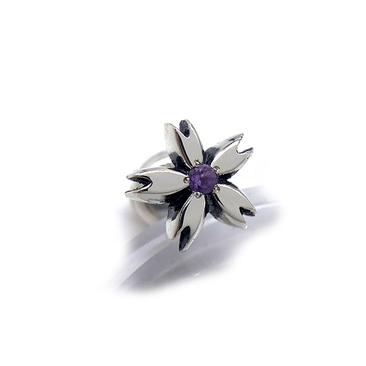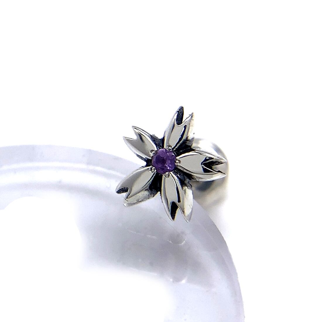 アメジスト 桜ピアス/シルバー925 片耳用/セカンドピアス つけっぱなし/シルバーアクセサリー メンズアクセサリー/和風