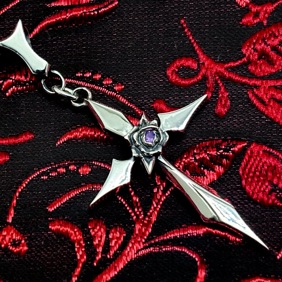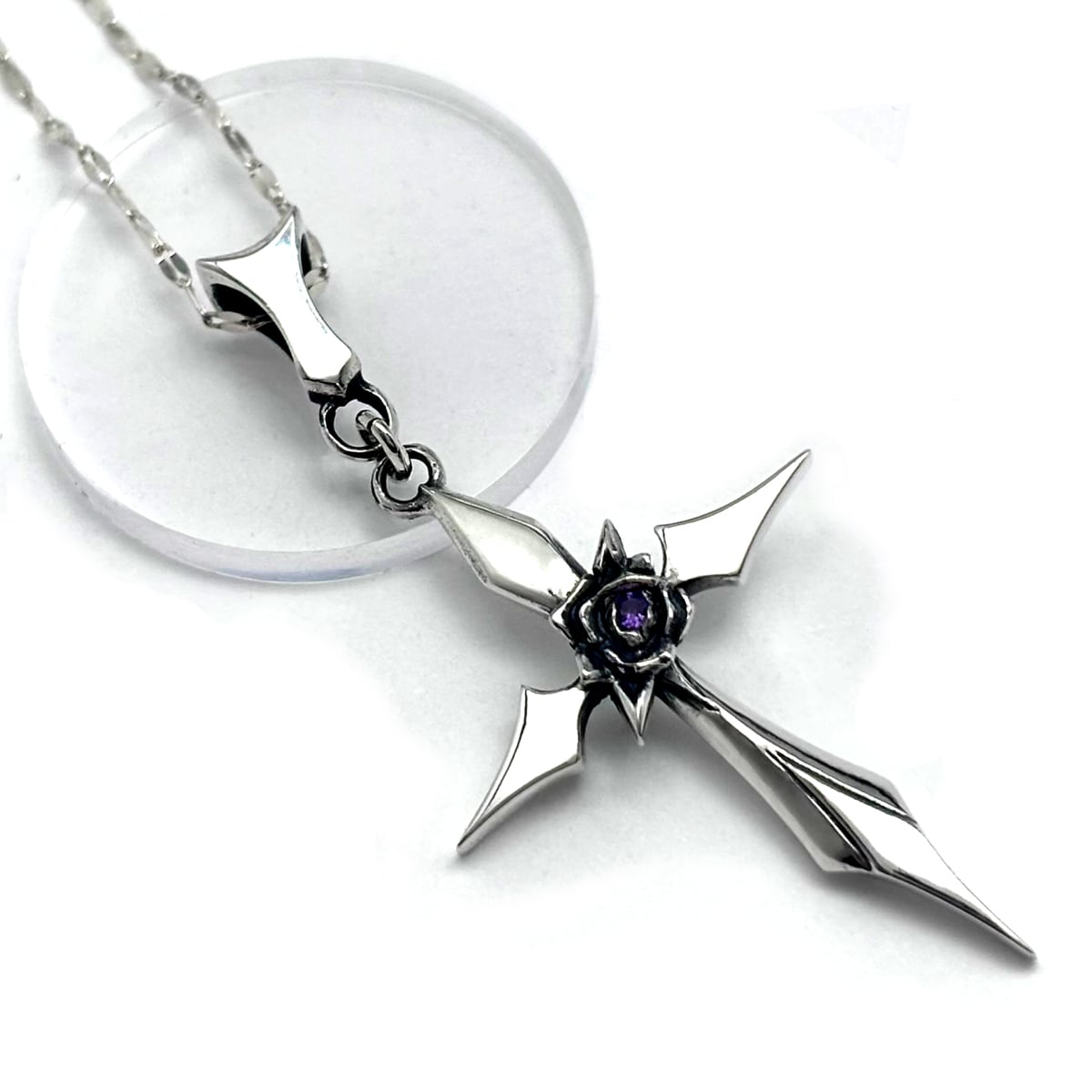 アメジスト 薔薇 十字架ネックレス シルバー925 ゴシック 送料無料