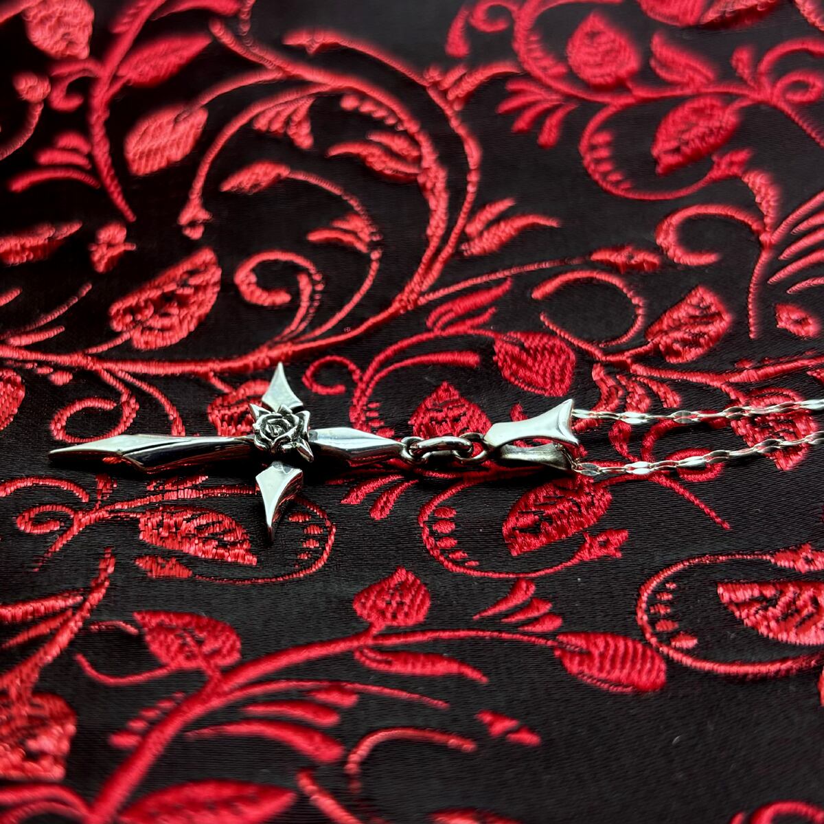 シャープな十字架にゴシックな薔薇を