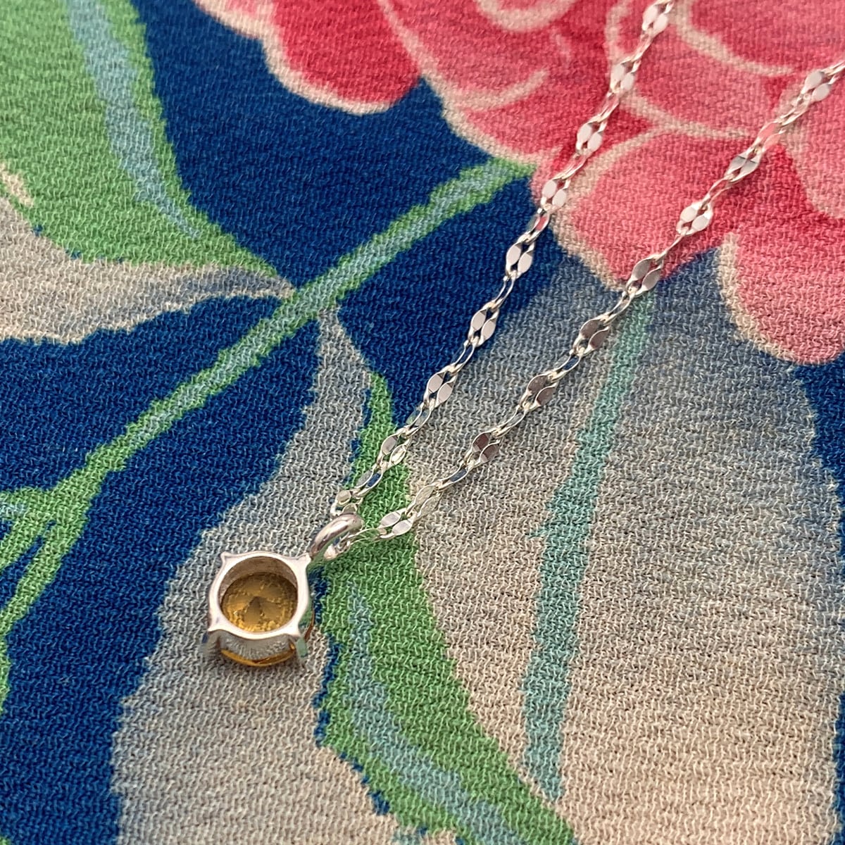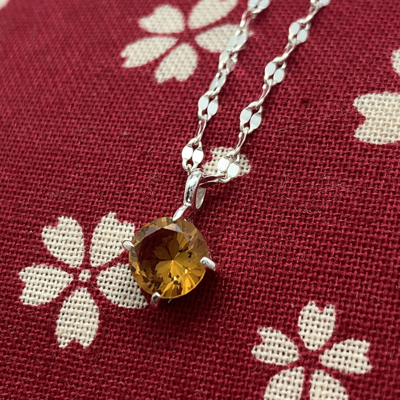 さくらインカット ネックレス シトリン/シルバー925/和風 和柄/和モダン 和ゴス/和装 着物/春 桜/天然石 誕生石/つけっぱなし