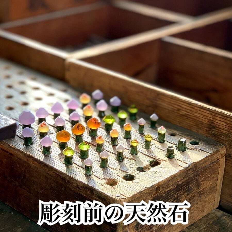 1個ずつ丁寧に天然石に桜を彫り込んでいます。