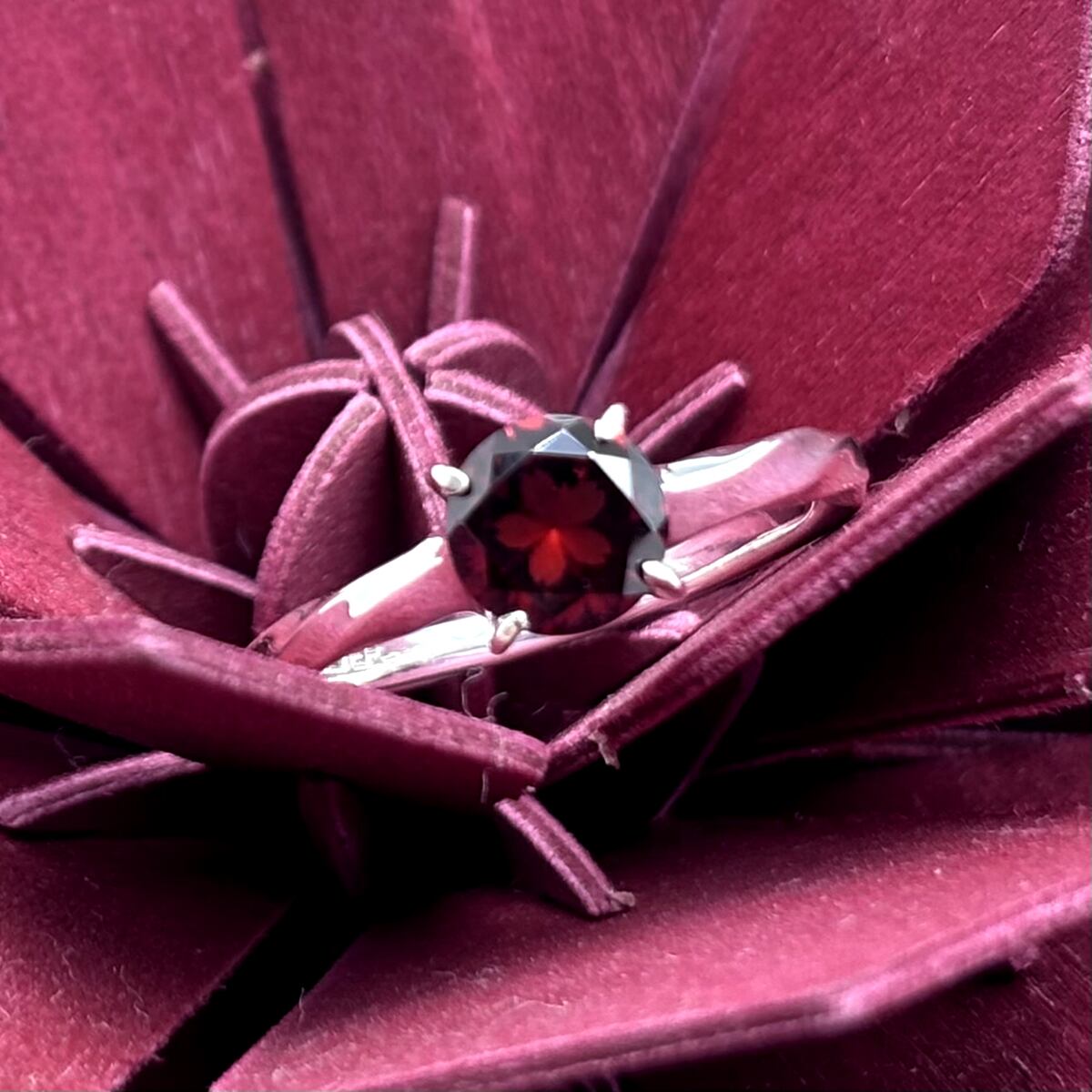 桜が彫られたガーネット シルバー925 リング | 和風 さくらインカット