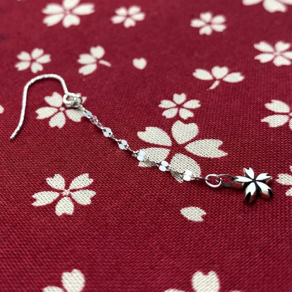 桜 チェーン ピアス/シルバ-925 片耳用/セカンドピアス つけっぱなし/和風 ピアス 和柄/和装 ピアス 和モダン/シルバーアクセアリー メンズアクセサリー/男性へのプレゼント