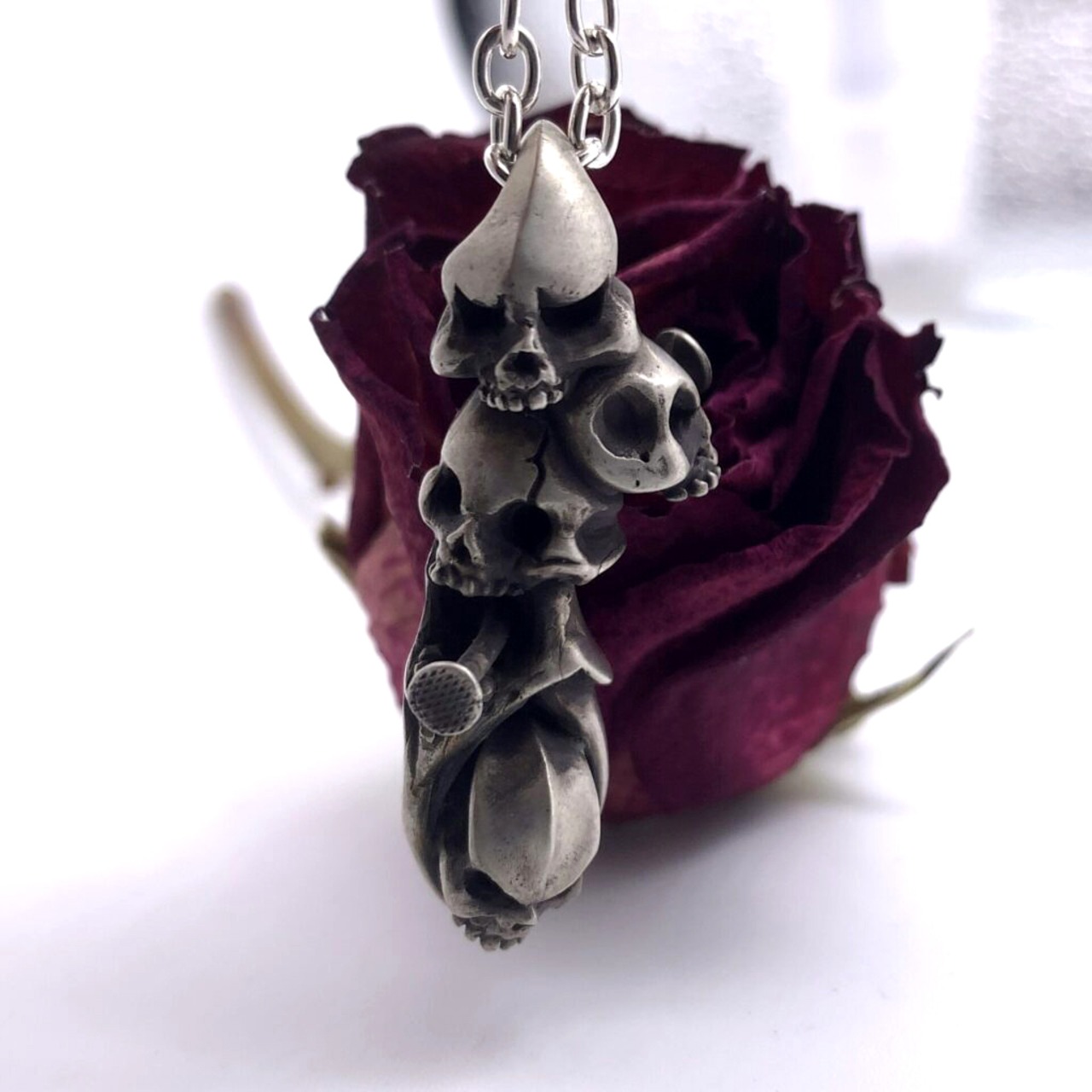 釘 スカル ネックレス/シルバー925 つけっぱなし/メンズアクセサリー シルバーアクセサリー/ゴシック V系/パンクロック/男性へのプレゼント