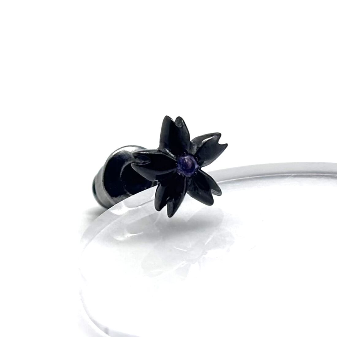 黒 桜ピアス アメジスト/シルバー925 片耳用/セカンドピアス つけっぱなし/シルバーアクセサリー メンズ アクセサリー/彼氏 誕生日アクセサリー/男性へのプレゼント/メンズピアス