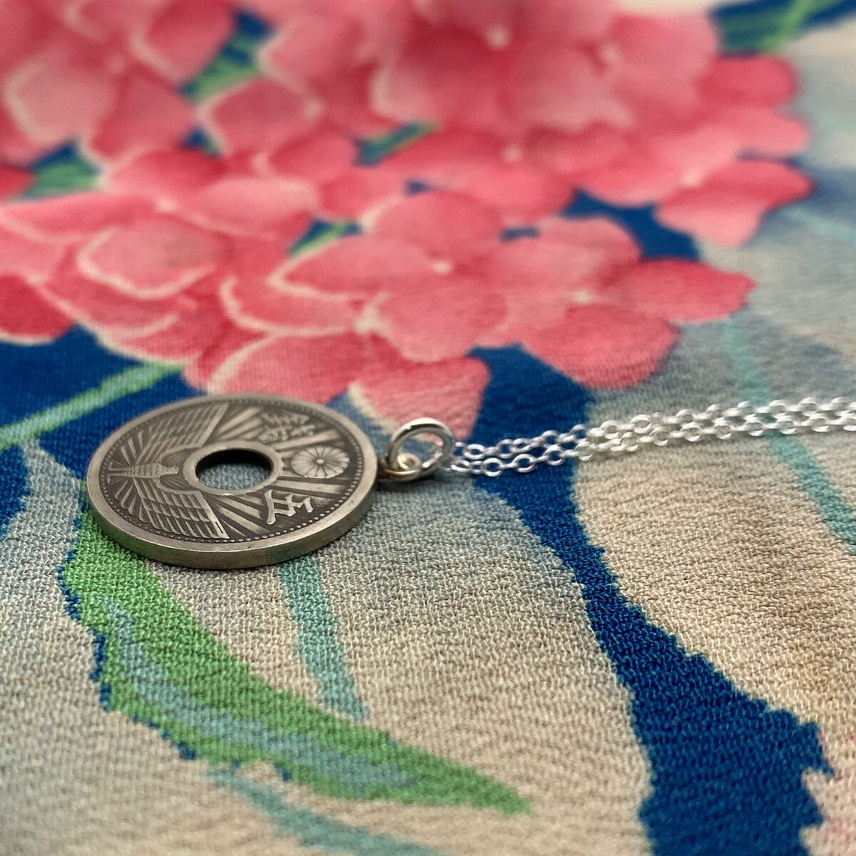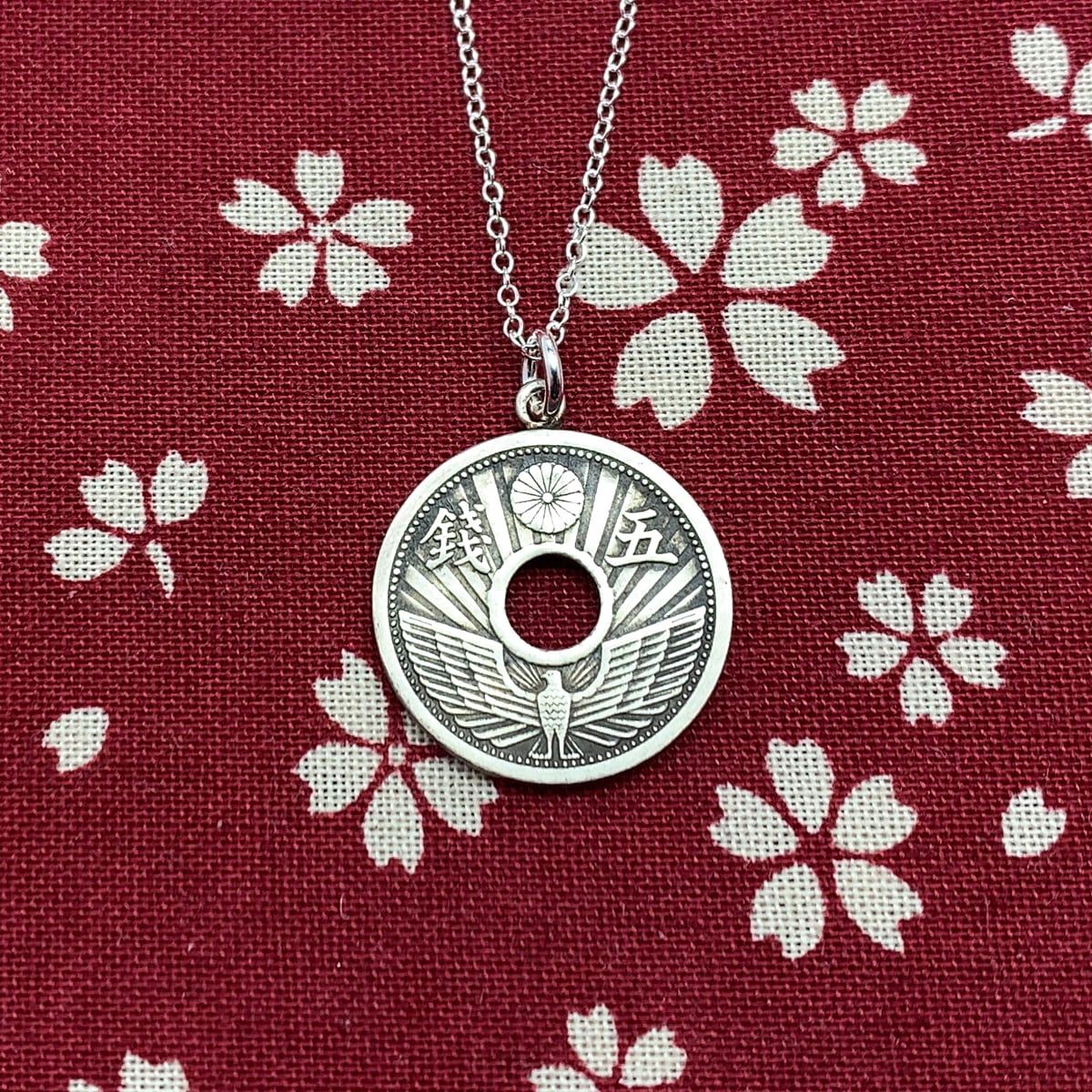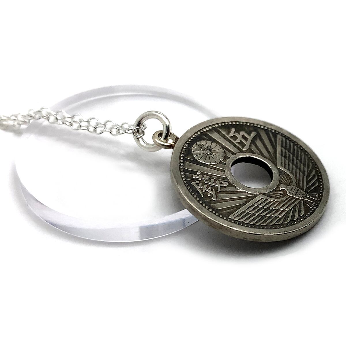 古銭ネックレス 5銭/ニッケル シルバー925/メンズアクセサリー コインネックレス/和風/男性へのプレゼント